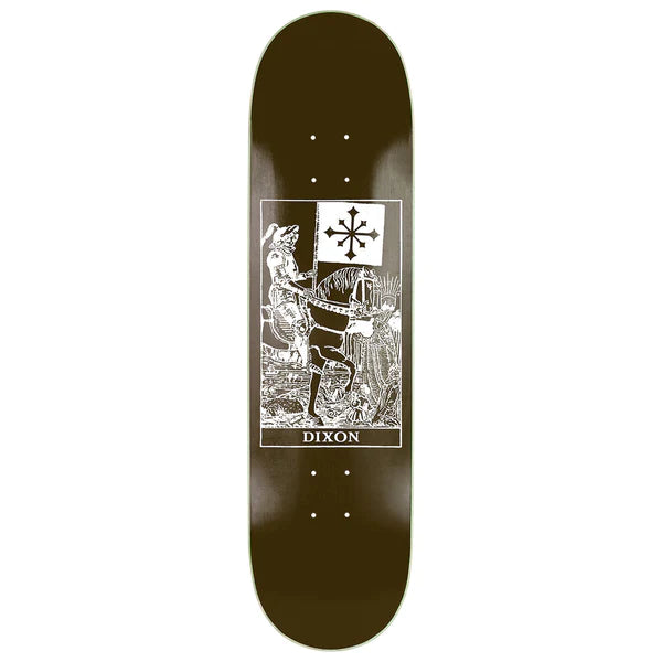From Disorder, the signature Clive Dixon Card 8.0" skateboard deck features a brown bottom ply graphic - boasting an occult tarot card design. Made with Nyjah Huston's custom board shape, the deck has a mellower concave for easier foot positioning.
