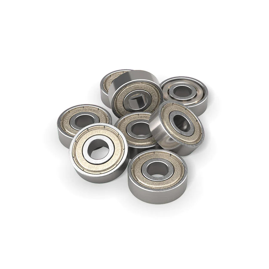 Genuine Parts GP-S skateboard bearings feature a crimped metal outer shield, shield-less back, micro-polished steel races, custom heavy-duty cage, and light oil lubricant.
