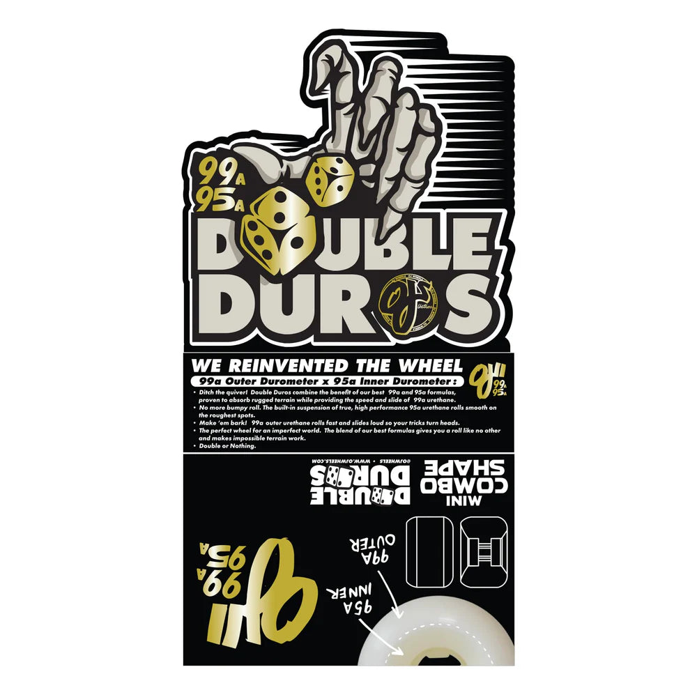 Double Duros combine the benefits of our best 99a and 95a formulas, proven to absorb rugged terrain while providing the speed and slide of 99a urethane.