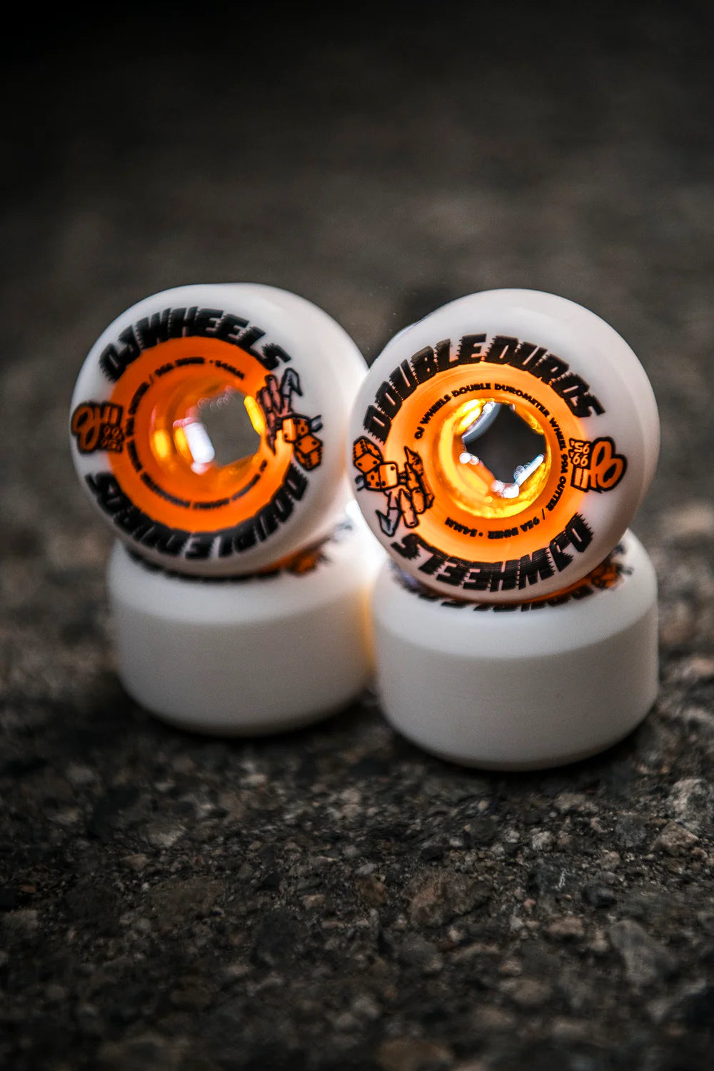 OJ Wheels 54mm, 99a/95a Double Duro white with transparent orange inner.